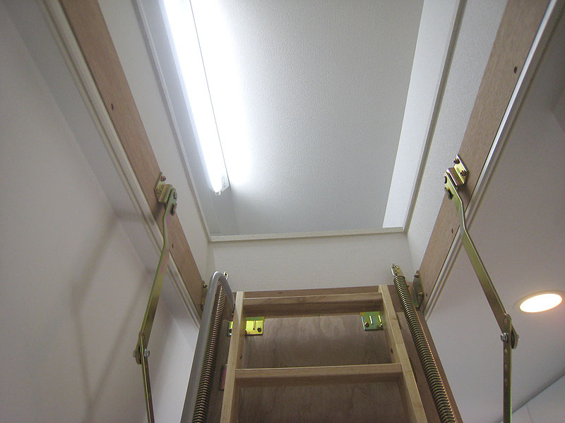1階リビングには床暖房が付いていて、光熱費にも経済的です。2階の各部屋につながる踊り場には、採光もたくさんあり、非常に明るいですし、屋根裏収納もありますので、スキーの板や季節物の服など、日頃、使わないものをたくさん収納しておく事が可能です。